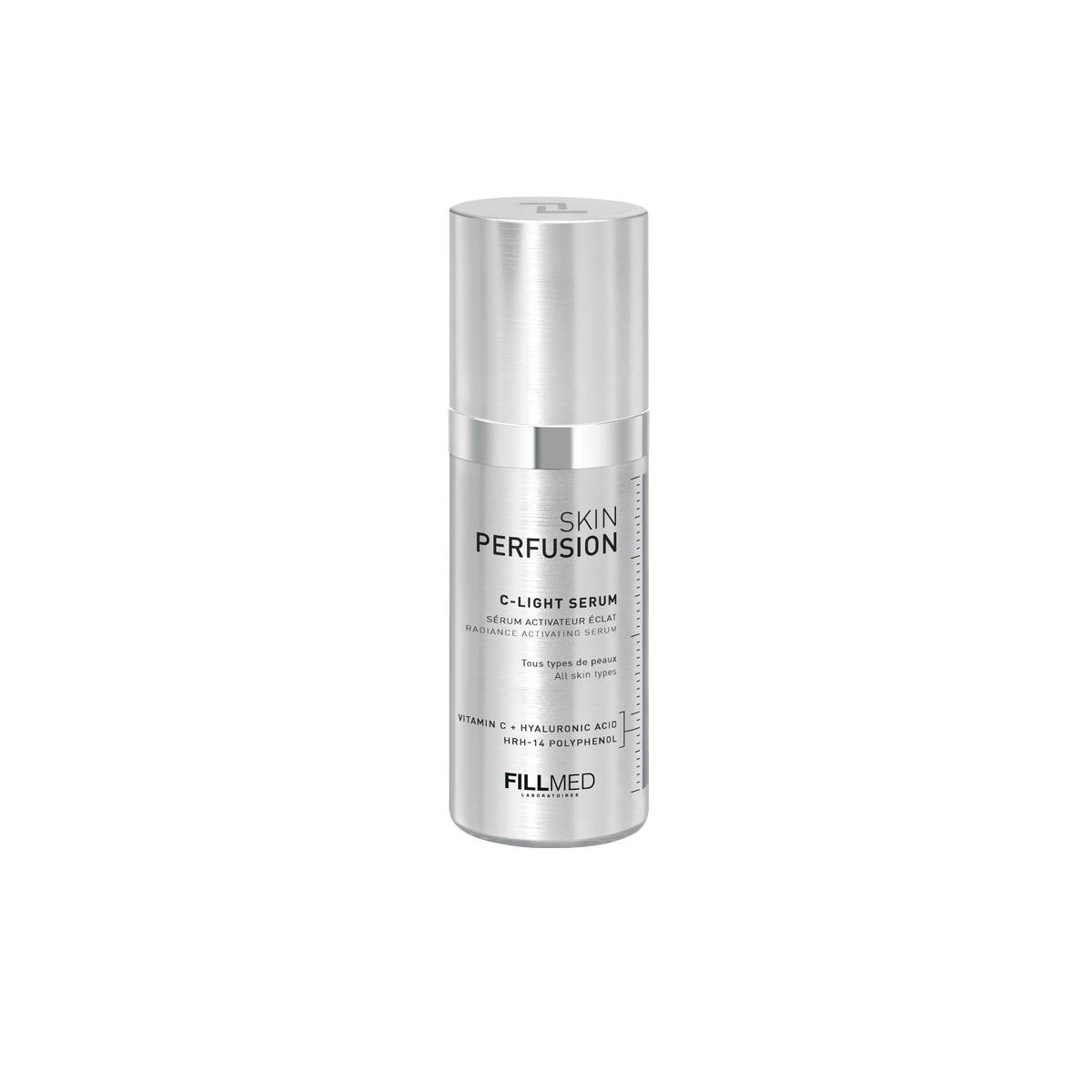 C-LIGHT SERUM es un sérum iluminador antioxidante indicado para todo tipo de pieles, especialmente aquellas apagadas y con signos de fatiga. Contiene Vitamina C pura (2%) que unifica el tono de la piel y aporta luminosidad, Vitamina H (biotina) para fortalecer el crecimiento celular, y un polifenol HRH-14 que mejora la textura cutánea y potencia la luminosidad natural del rostro. Enriquecido con la solución polirevitalizante NCTF, ayuda a proteger la piel frente a agresiones externas, mejorando su calidad y aspecto general. Su textura ligera proporciona un toque de frescura y se recomienda aplicar mañana y/o noche antes de la crema habitual, complementando perfectamente una rutina facial revitalizante.
